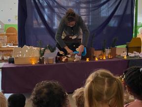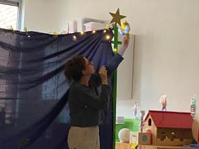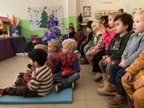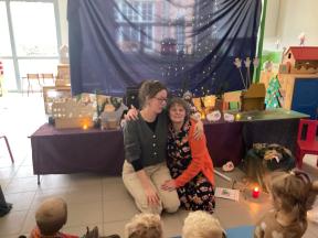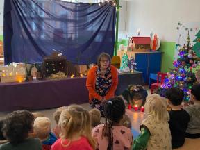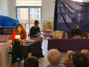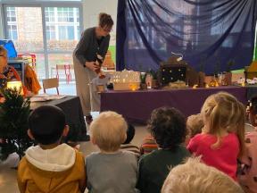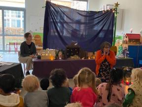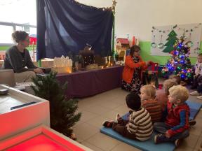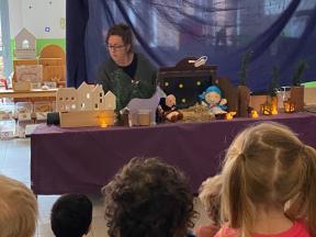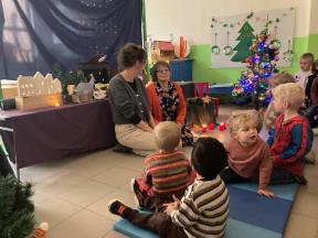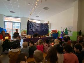 Kerstviering K0- K1 We keken samen naar een poppenkast van het kerstverhaal, zongen samen liedjes en smulden van zelfgemaakte kerstkoekjes. Een warm en gezellig moment samen!