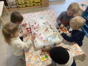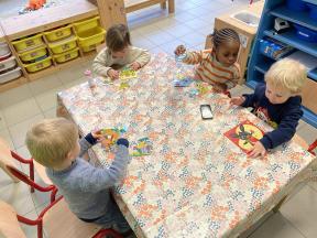 Themaloos in de poezenklas Wij ontdekten ten volle in de poezenklas. We leerden de hoeken van de klas kennen, de andere kleuters en de juffen.